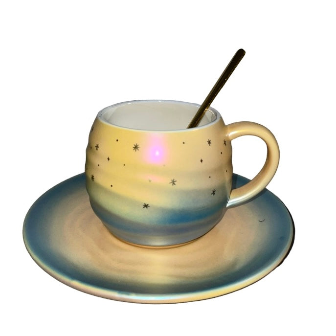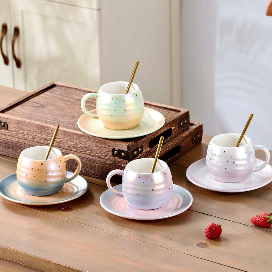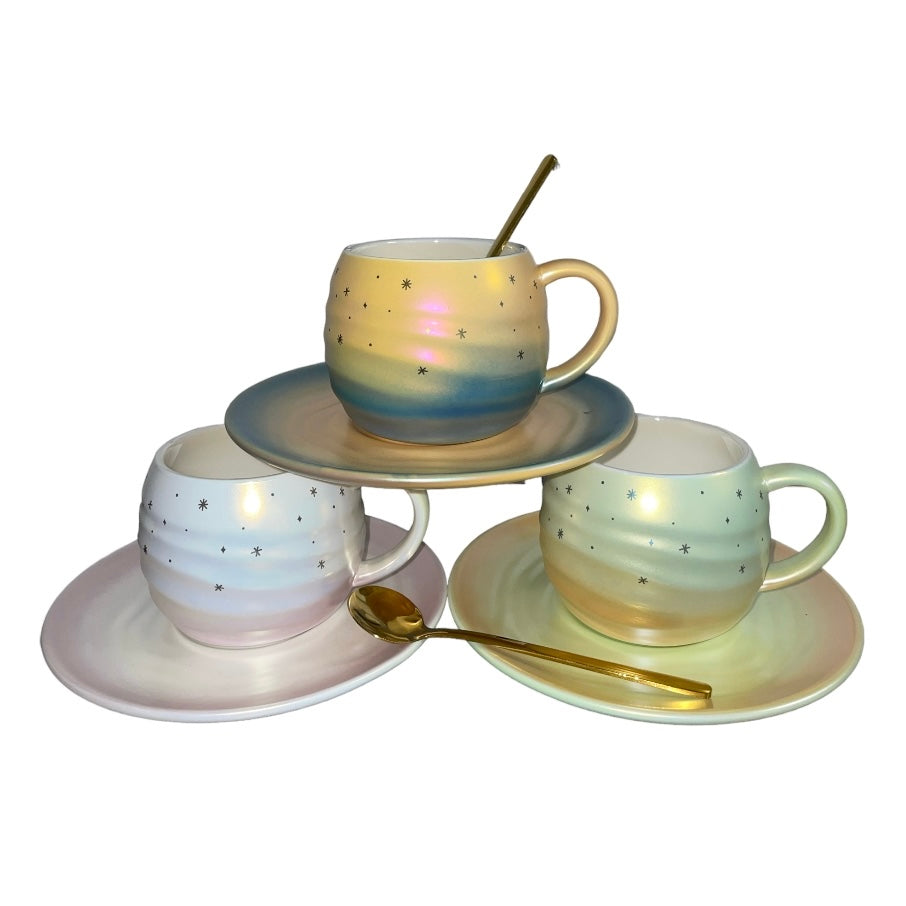 Κούπα “Unicup” Ιριδίζουσα με Πιατάκι & Χρυσό Κουταλάκι Πορτοκαλί 250ml