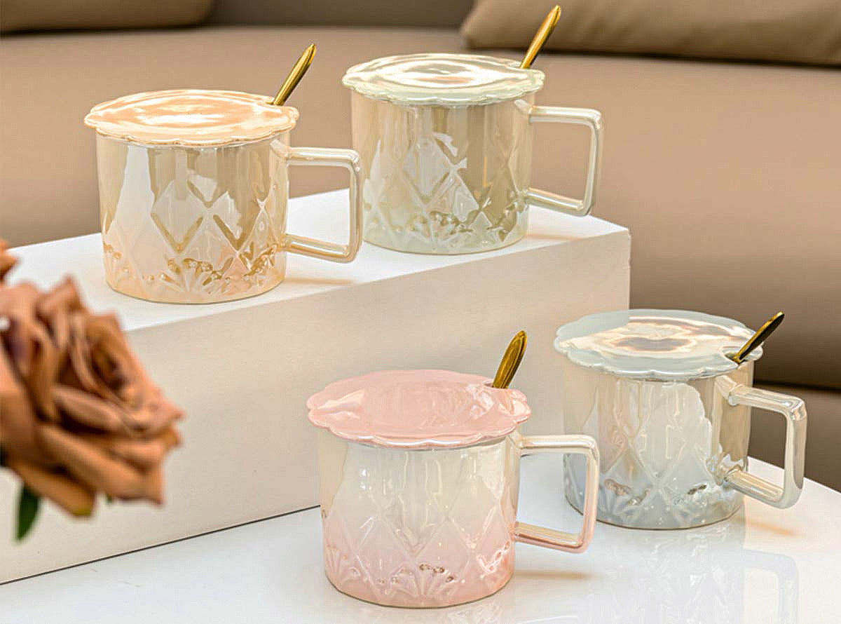 Κούπα Vintage Γκρι με καπάκι & κουταλάκι 380ml