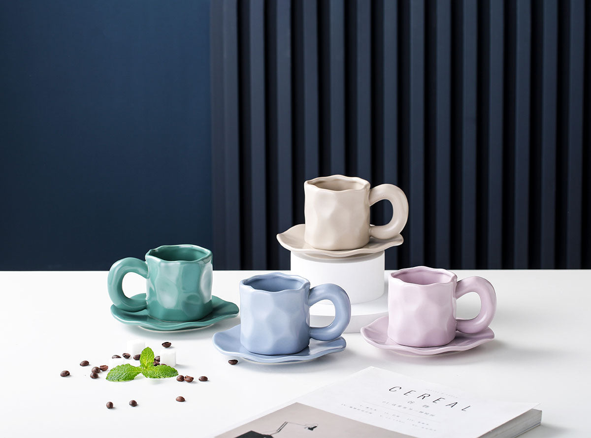 Κούπα Ανάγλυφη με Πιατάκι Λιλά 190ml